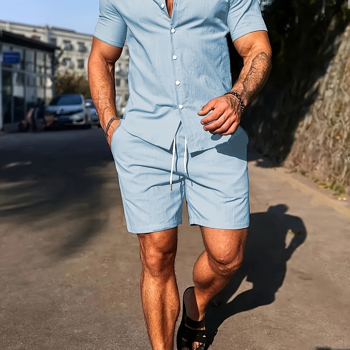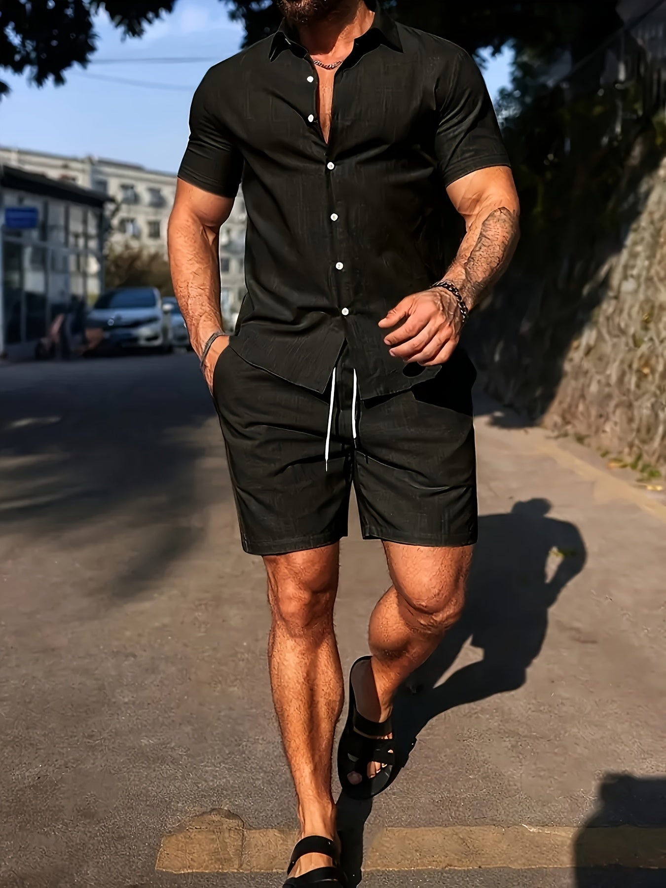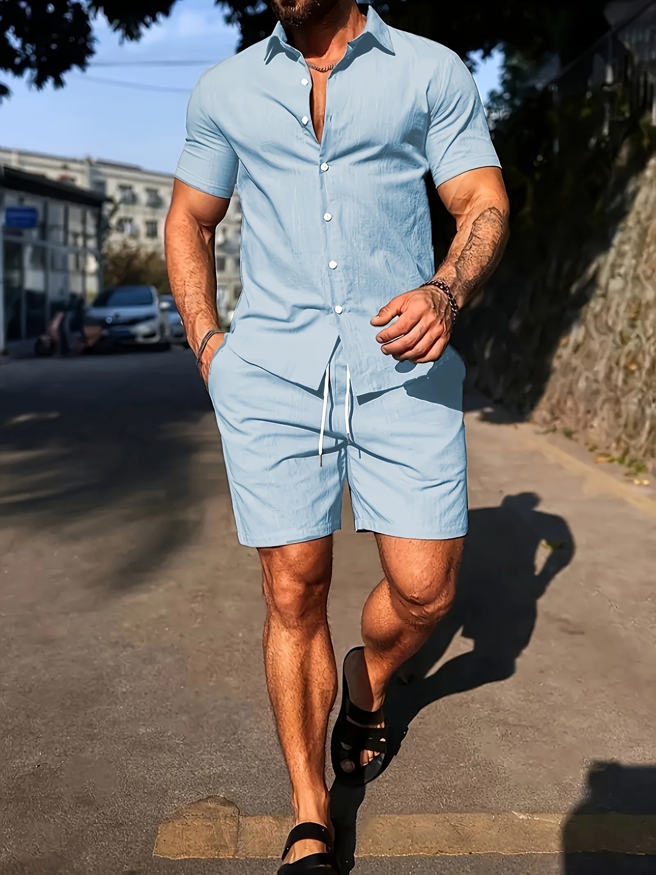 Deze set combineert het comfort van strandkleding met de uitstraling van een stijlvolle outfit. Ideaal voor de man die er verzorgd uit wil zien, zelfs op de warmste dagen.