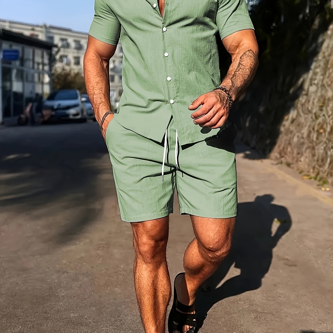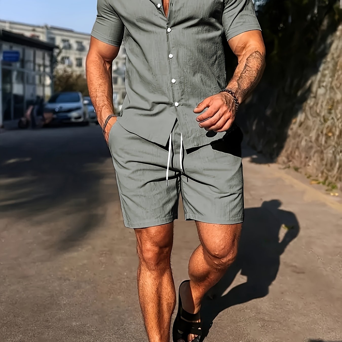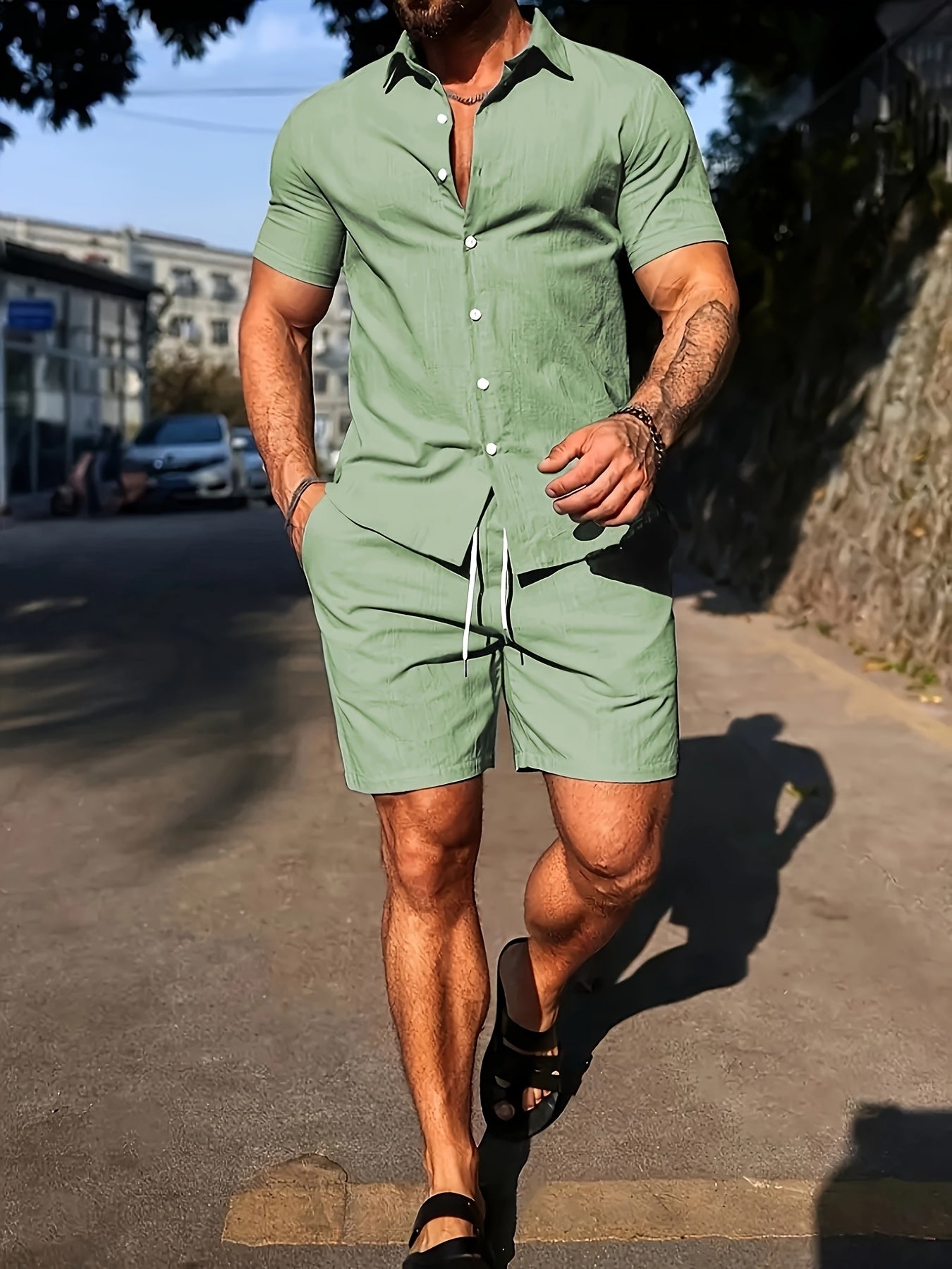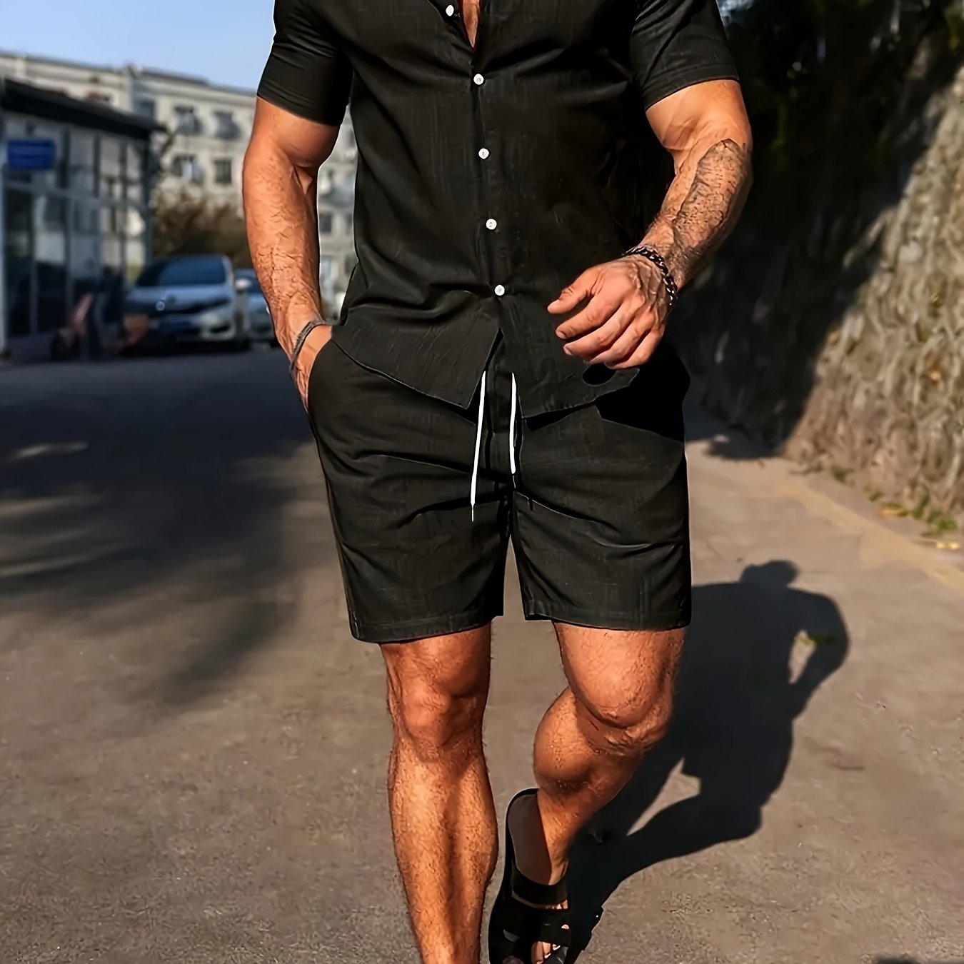 Deze set combineert het comfort van strandkleding met de uitstraling van een stijlvolle outfit. Ideaal voor de man die er verzorgd uit wil zien, zelfs op de warmste dagen.